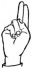 На ћирилици написано ЈАВОР КОЈИЋ састоји се из 10 слова [?]. Исписано ћириличном једноручном азбуком за глувонеме: